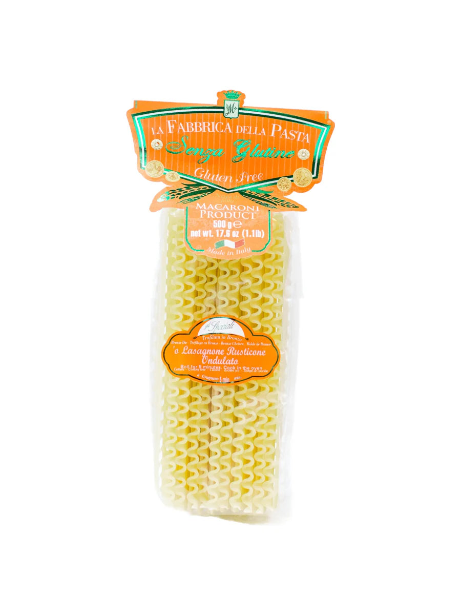 These large, gluten-free noodles are perfect for your favorite meat, cheese or veggie lasagna dish. La Fabbrica della Pasta is the first pasta factory in the world to make a bronze-drawn, artisanal pasta of Gragnano, that is completely gluten free.